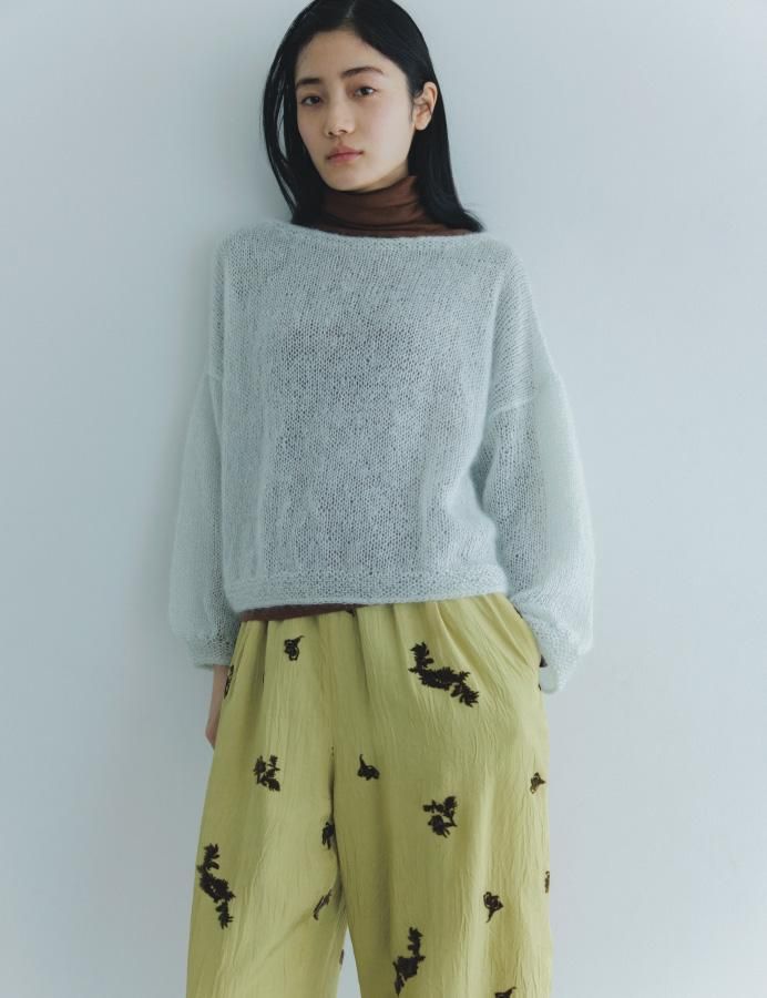 2025.10.14 シルクモヘヤのシアープルオーバー キット ふわふわした編み地から覗く透け感が魅力的なウエア。
